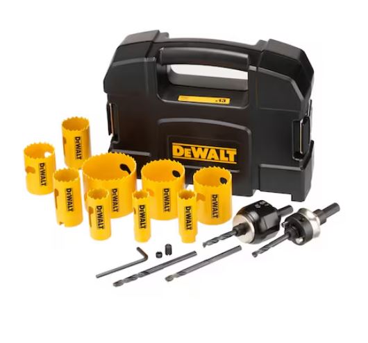 adapter 1/2", adapter 3/8", 2 x wiertło prowadzące, korony bimetaliczne: 20, 22, 25, 32, 35, 38, 44, 51,64 mm