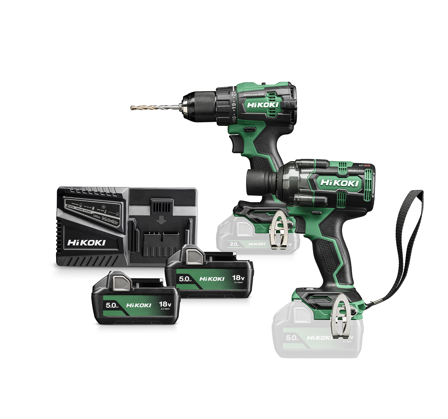 Zestaw elektronarzędzi 18V (wkrętarka udarowa DV18DE, klucz WR18DH) 2x5,0Ah KC18DE WMZ Hikoki. Instrukcja obsługi dostarczana jest razem z produktem.