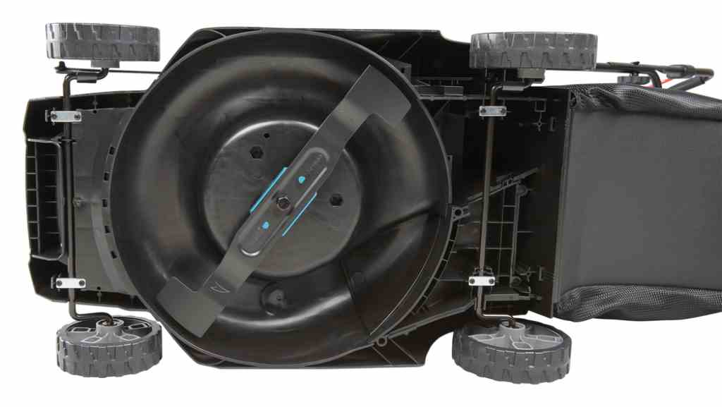 Jedną z najważniejszych zalet tego urządzenia jest 8-stopniowa centralna regulacja wysokości koszenia, dostosowana za pomocą wygodnej dźwigni. Dodatkowo, kosiarka wyposażona jest w hamulec elektryczny i łagodny rozruch, co zapewnia bezpieczeństwo i wygodę podczas pracy. Wykonana z wysokiej jakości plastiku obudowa oraz koła na łożyskach kulkowych gwarantują trwałość i wygodę w użytkowaniu.