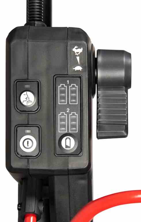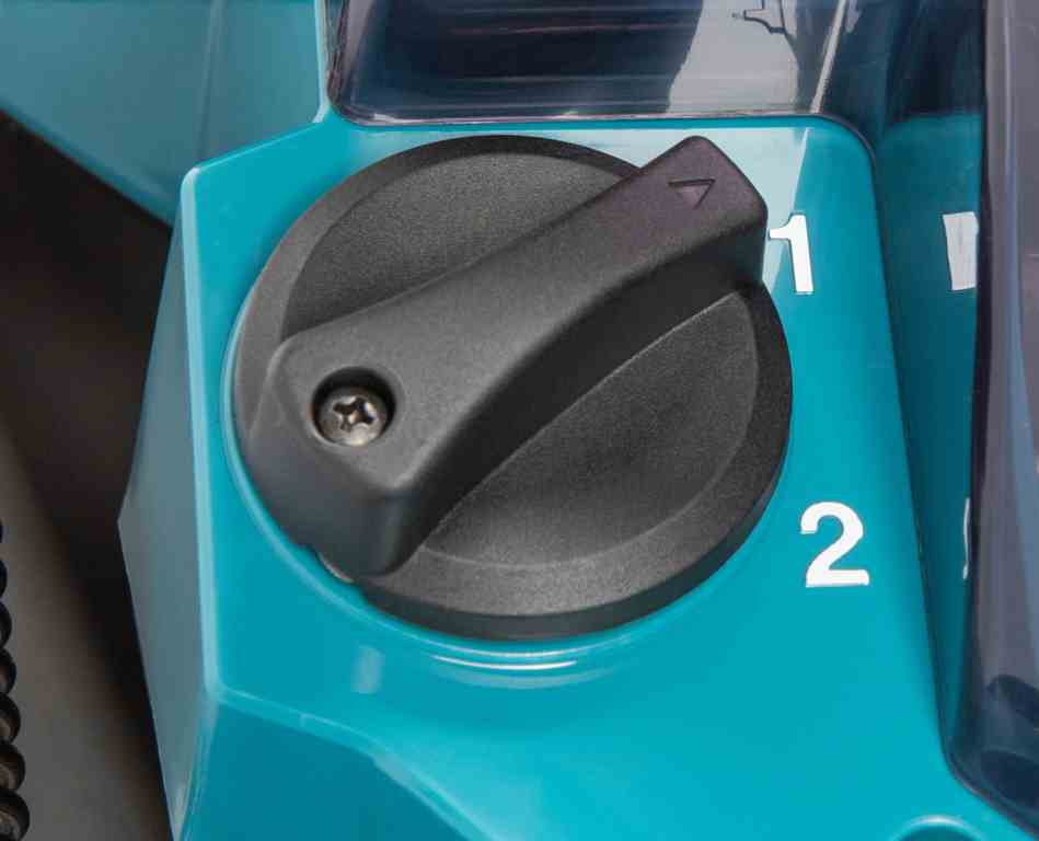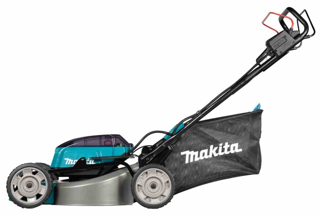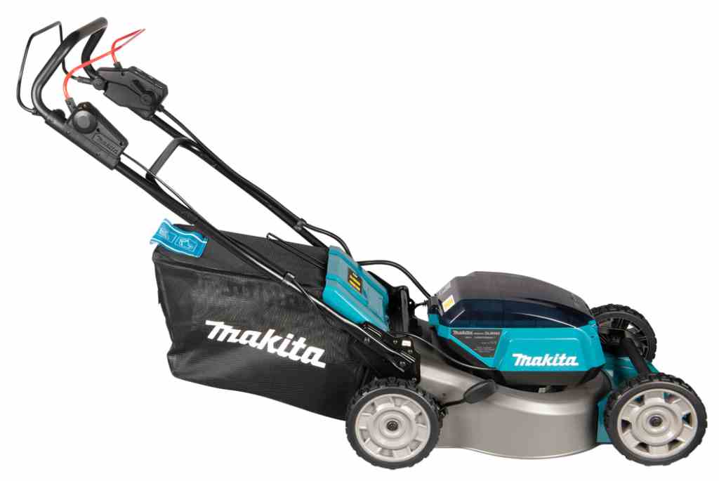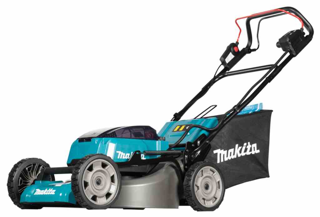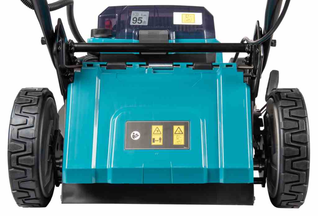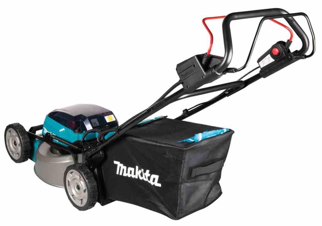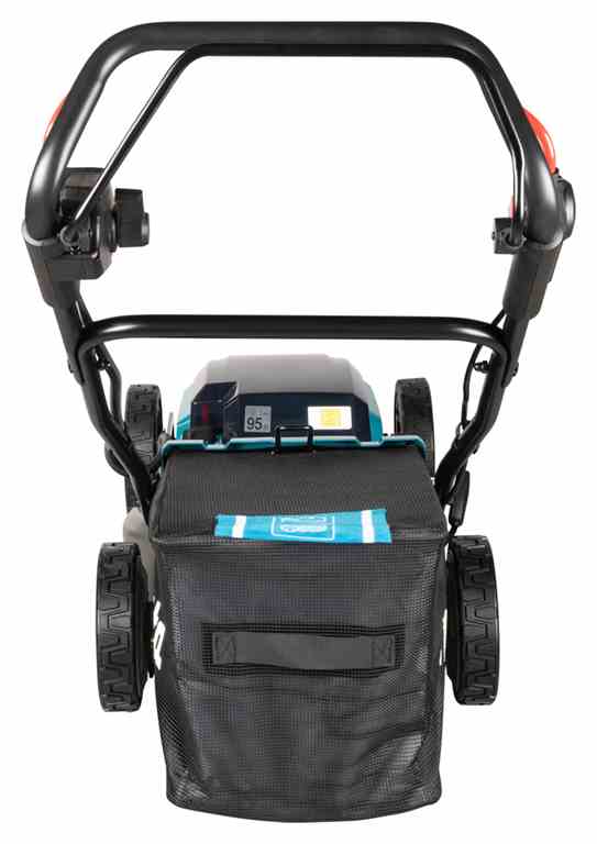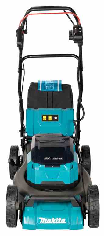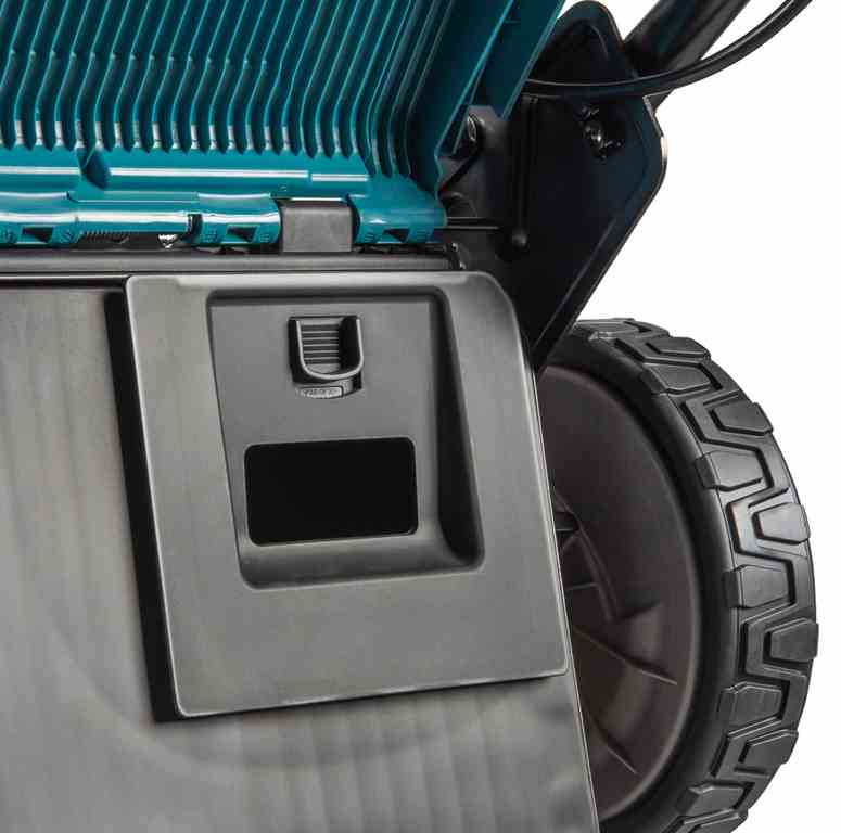 Kosiarka DLM465 jest wyposażona w 4 porty na akumulatory BL1860B, co umożliwia dłuższy czas pracy na jednym naładowaniu. Dzięki przełącznikowi można przełączać pomiędzy parami akumulatorów, co pozwala wykorzystać ich pełną pojemność. Dodatkowym atutem jest tryb obniżonego hałasu, który utrzymuje stałą prędkość obrotową na poziomie 2500 obr./min, zmniejszając poziom generowanego dźwięku.