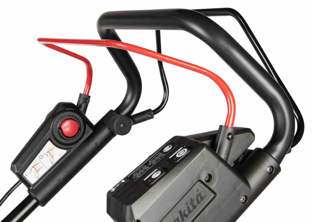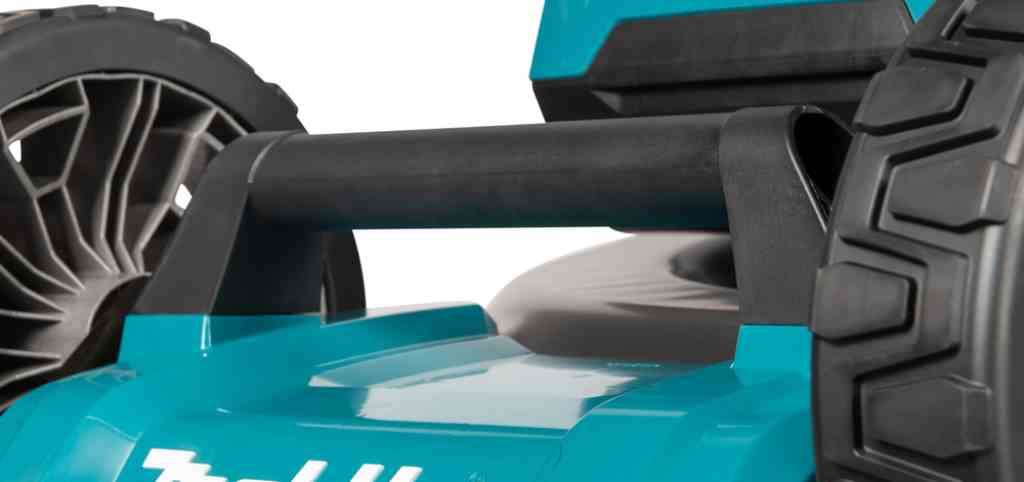 Kosiarka DLM465 jest wyposażona w wzmocniony uchwyt, który gwarantuje wygodę i komfort podczas pracy. Ma on także łatwy dostęp do panelu sterowania z włącznikiem głównym, włącznikiem trybu niskiego hałasu oraz wskaźnikiem naładowania akumulatorów. Kosiarka posiada również 2-stopniową regulację wysokości uchwytu, co pozwala na dostosowanie jej do wzrostu użytkownika.